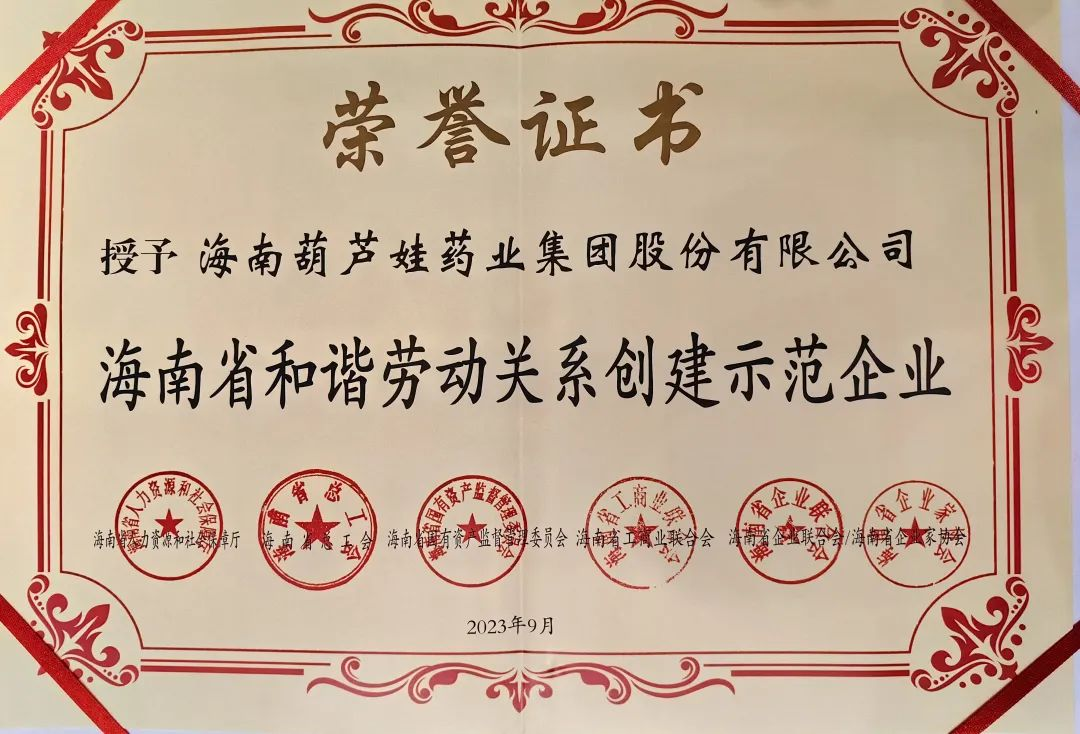 918博天娱乐旗舰药业集团获评“海南省和谐劳动关系创建示范企业”